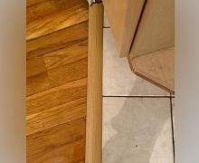Способ монтажа: алюминиевый порожек крепится в проем между двумя напольными покрытиями с помощью универсального би-дюбеля. В полу просверливаются отверстия, а затем би-дюбели заводятся своей шляпкой в нишу с обратной стороны порога и вставляются в просверленные отверстия.