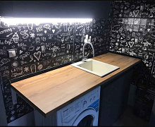 Способ монтажа: данный плинтус для столешницы состоит из двух частей - основания и декоративной части. Основание крепится к поверхности на жидкие гвозди или саморезы к стене или столешнице. Далее сверху надевается рифленая часть. Торцы оформляются при помощи специальной фурнитуры, подходящей под цвет плинтуса.