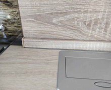 Способ монтажа: данный плинтус для столешницы состоит из двух частей - основания и декоративной части. Основание крепится к поверхности на жидкие гвозди или саморезы к стене или столешнице. Далее сверху надевается рифленая часть. Торцы оформляются при помощи специальной фурнитуры, подходящей под цвет плинтуса.
